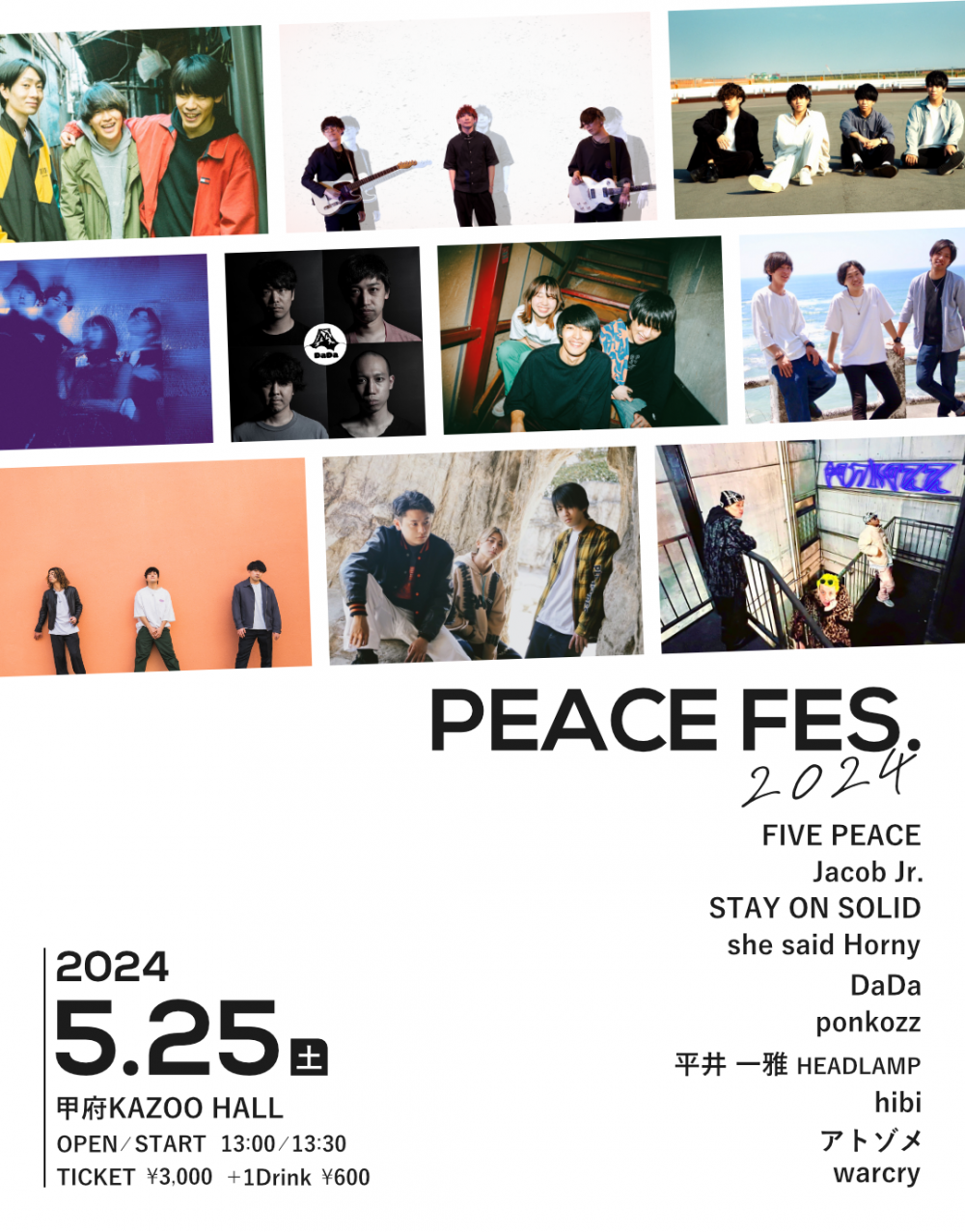 FIVE PEACE presentsPEACE FES 2024OPEN 13:00 / START 13:30 adv ¥3000(D別) / day ¥3500(D別) [出演] [チケット取扱い] |