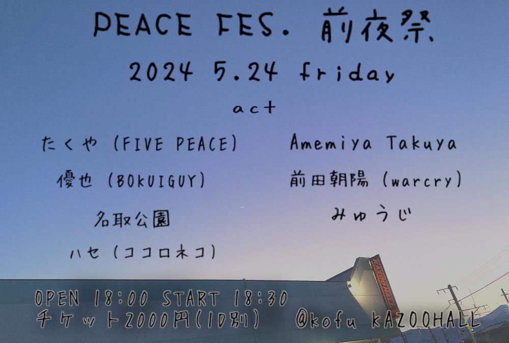 KAZOO HALL presentsPEACE FES 前夜祭OPEN 18:00 / START 18:30 adv ¥2000(D別) / day TBA [出演] [チケット取扱い] |