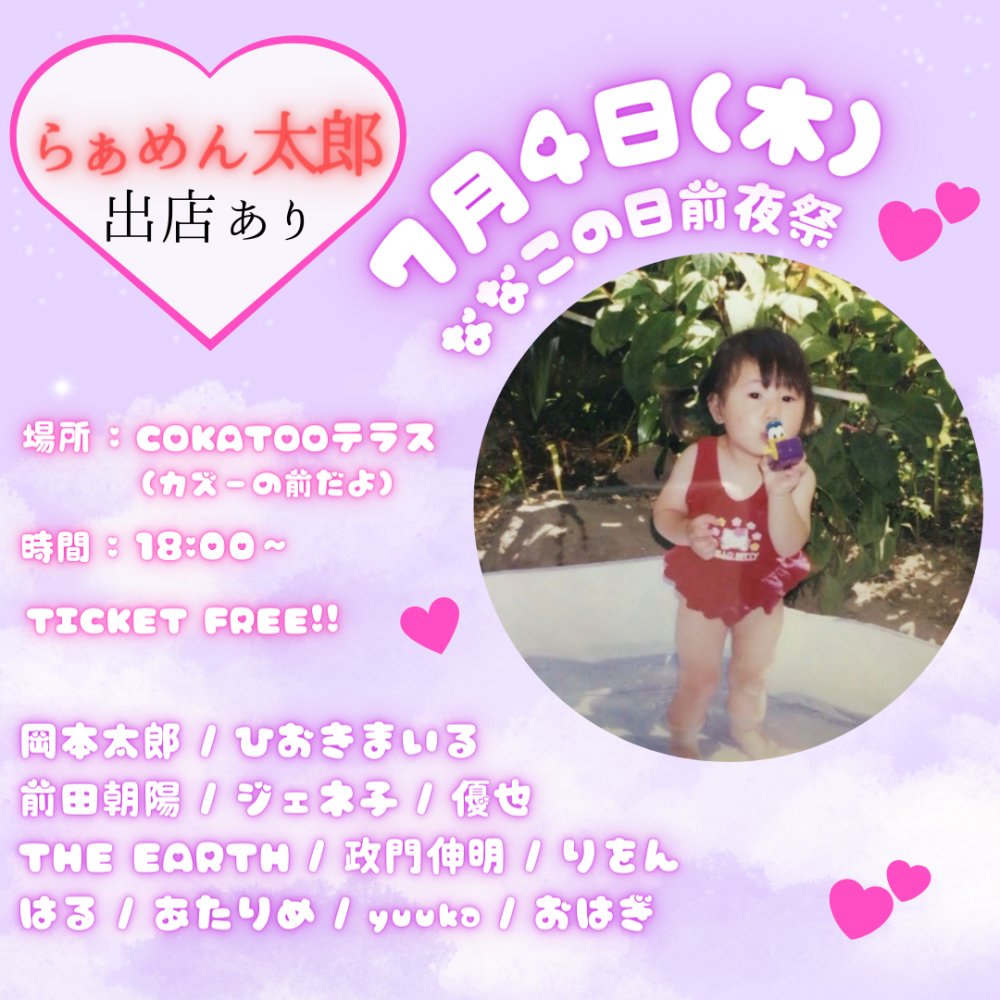 KAZOO HALL presentsななこの日前夜祭OPEN 18:00 / START 18:00 adv FREE / day FREE [出演] [チケット取扱い] |