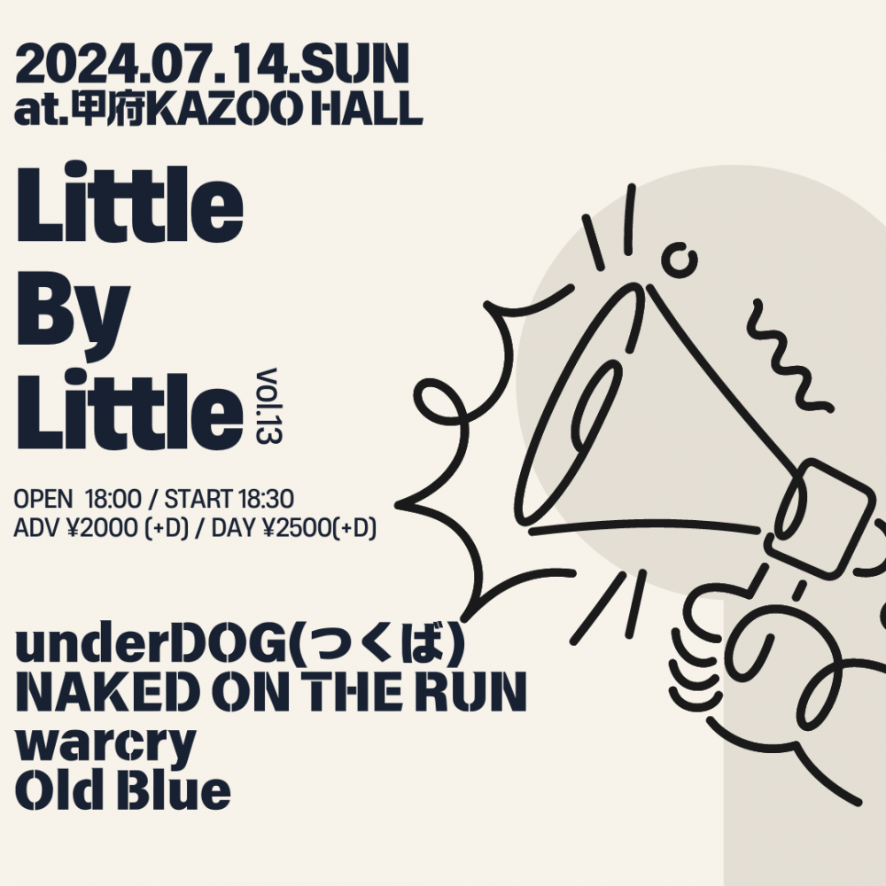 KAZOO HALL presentsLittle By Little vol.13OPEN 18:00 / START 18:30 adv ¥2000(D別) / day ¥2500(D別) [出演] [チケット取扱い] |