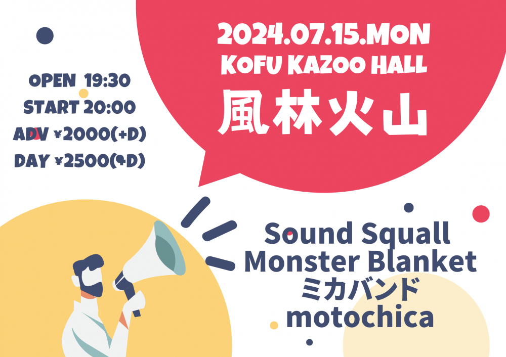 KAZOO HALL presents風林火山OPEN 19:30 / START 20:00 adv ¥2000(D別) / day ¥2500(D別) [出演] [チケット取扱い] |