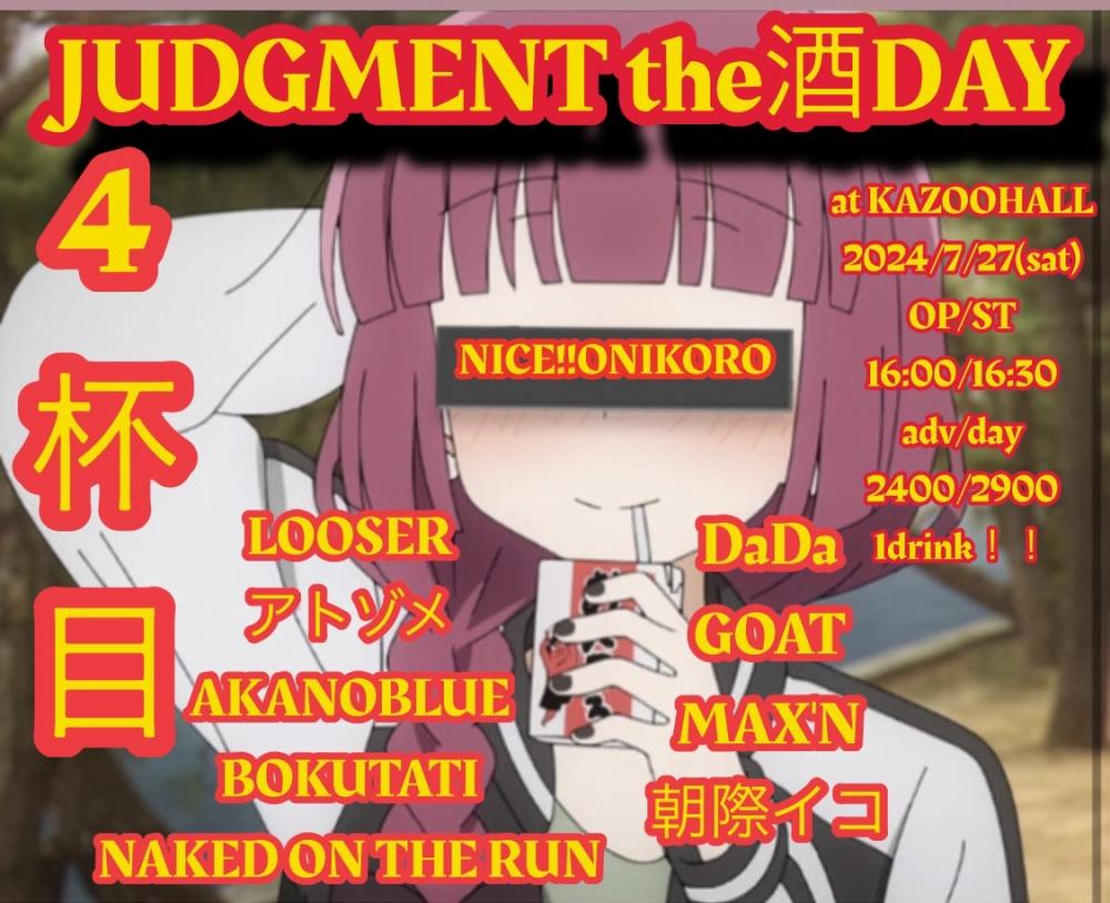 ぶんたpresentsJUDGMENT the 酒 DAY 4杯目OPEN 16:00 / START 16:30 adv ¥2400(D別) / day ¥2900(D別) [出演] [チケット取扱い] |