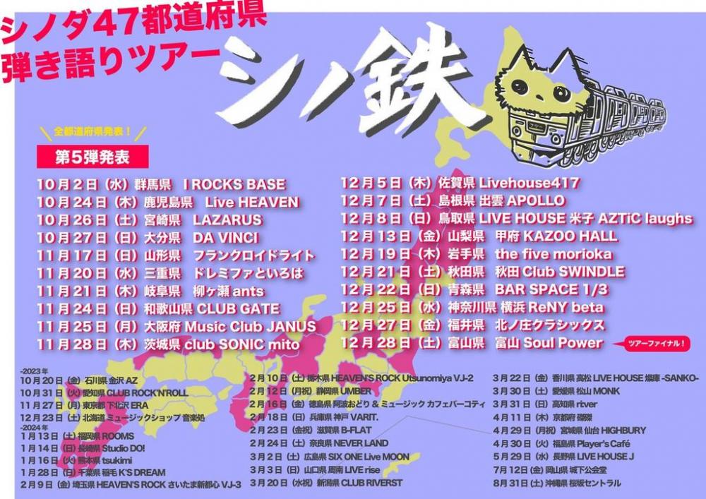 Snow White Music Inc presentsシノダ47都道府県弾き語りツアー「シノ鉄」OPEN 18:30 / START 19:00 adv ¥4500(D別) / day ¥5000(D別) [出演] ・FC先行チケットはこちら 8/31(土)12:00〜 |