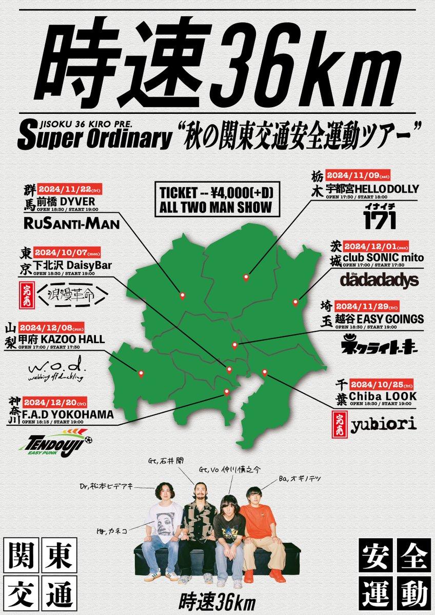 2DK records presents時速36km presents Super Ordinary "秋の関東交通安全運動ツアー"OPEN 17:00 / START 17:30 adv ¥4000(D別) / day ¥4500(D別) [出演] [チケット取扱い] |