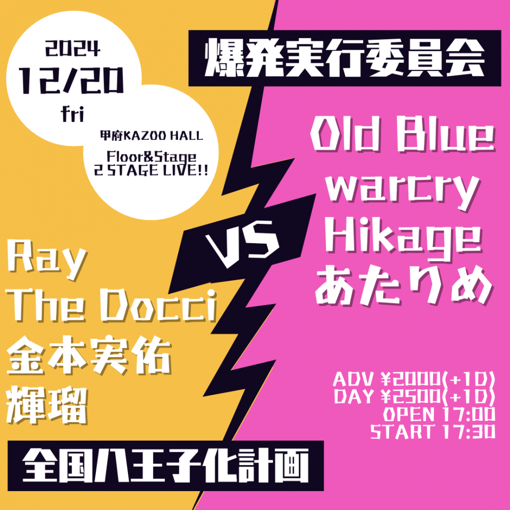 KAZOO HALL presents全国八王子化計画 VS 爆発実行委員会OPEN 17:00 / START 17:30 adv ¥2000(D別) / day ¥2500(D別) [出演] [チケット取扱い] |