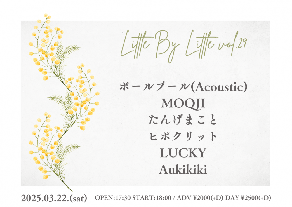KAZOO HALL presentsLittle By Little vol.29OPEN 17:30 / START 18:00 adv ¥2000(D別) / day ¥2500(D別) [出演] [チケット取扱い] |