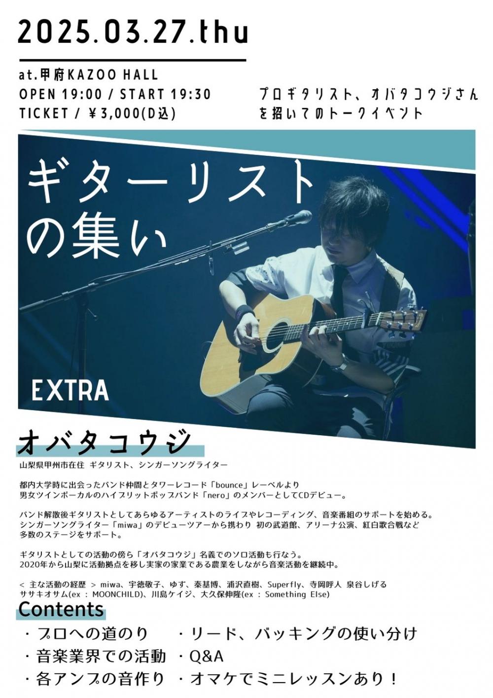 KAZOO HALL presentsギターリストの集い ExtraOPEN 19:00 / START 19:30 adv ¥3000(D込) / day ¥3000(D込) [出演] [チケット取扱い] |