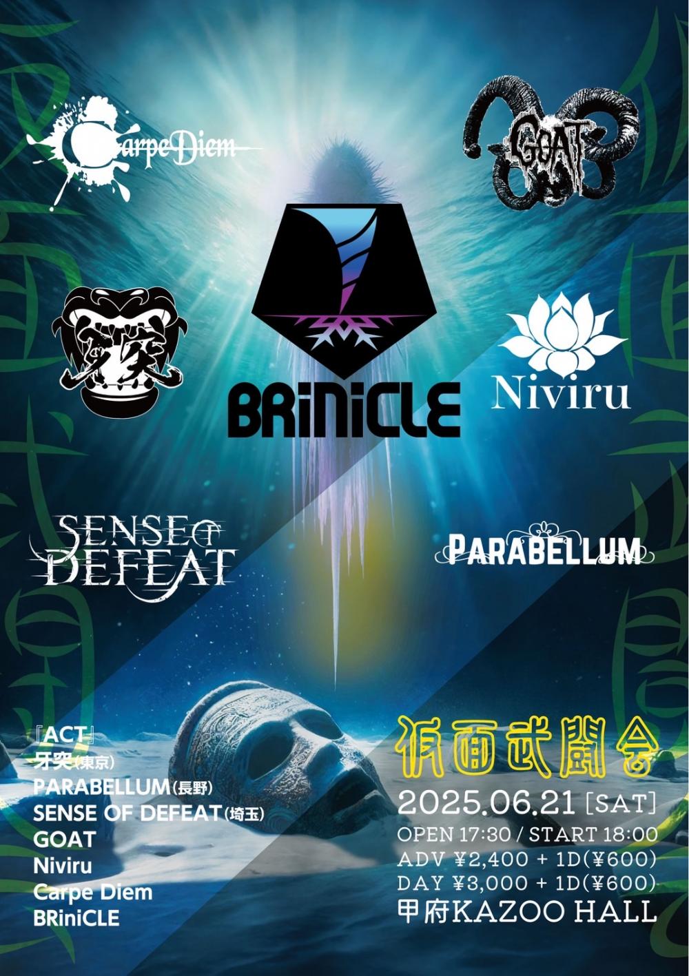 BRiniCLE presents仮面武闘会OPEN 17:30 / START 18:00 adv ¥2400(D別) / day ¥3000(D別) [出演] [チケット取扱い] |
