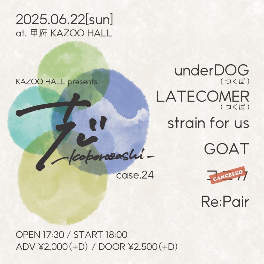 KAZOO HALL presents志-kokorozashi- case.24OPEN 17:30 / START 18:00 adv ¥2000(D別) / day ¥2500(D別) [出演] [チケット取扱い] |