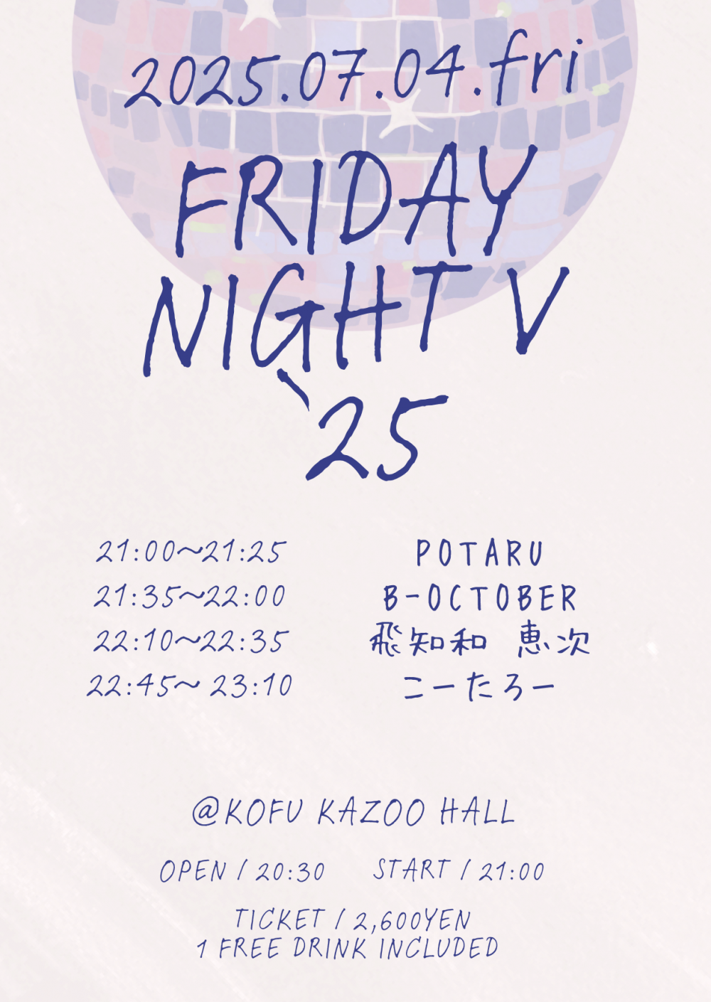KAZOO HALL presentsFRIDAY NIGHT V '25OPEN 21:00 / START 21:00 adv ¥2600(D込) / day ¥2600(D込) [出演] [チケット取扱い] |