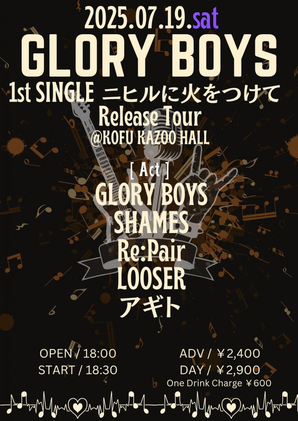 KAZOO HALL presentsThe Earth Defense Force chapter.83 -GROLY BOYS 1st SINGLE [ニヒルに火をつけて] Release Tour -OPEN 18:00 / START 18:30 adv ¥2400(D別) / day ¥2900(D別) [出演] [チケット取扱い] |