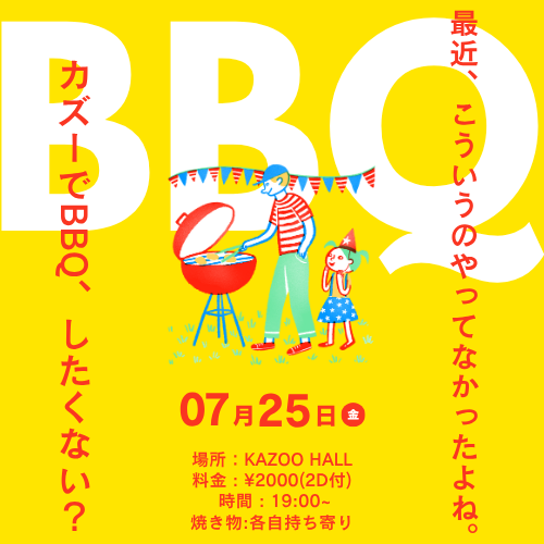 KAZOO HALL presents月末!華金!BBQ!OPEN 19:00 / START 19:00 adv ¥2000(2D付) / day ¥2000(2D付) [出演] [チケット取扱い] |