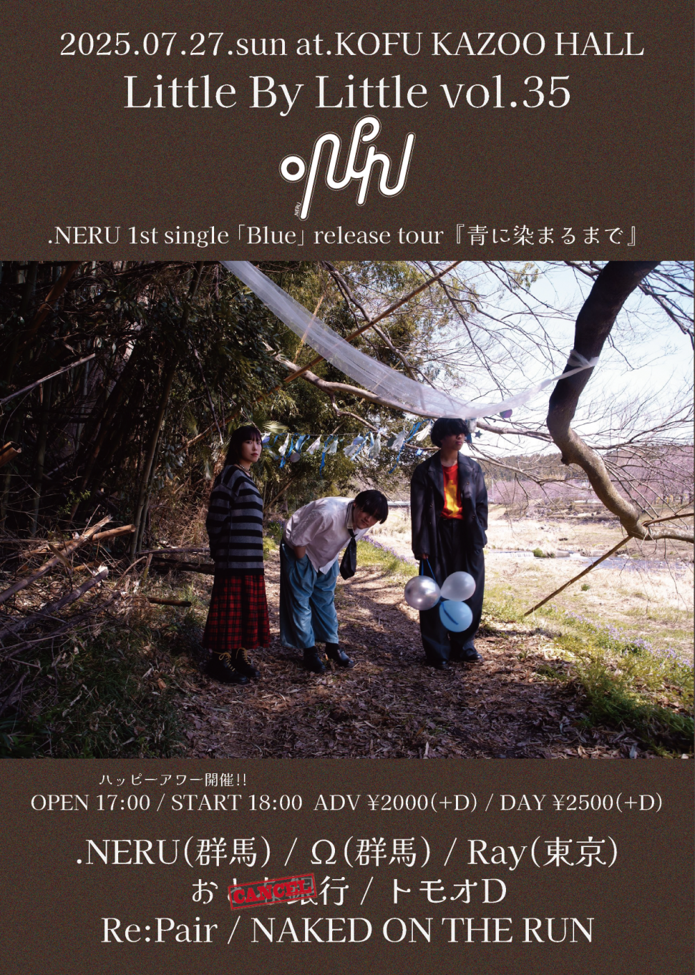 KAZOO HALL presentsLittle By Little vol.35 〜.NERU 1st single 「Blue」 release tour 『青に染まるまで』〜OPEN 17:00 / START 18:00 adv ¥2000(D別) / day ¥2500(D別) [出演] [チケット取扱い] |