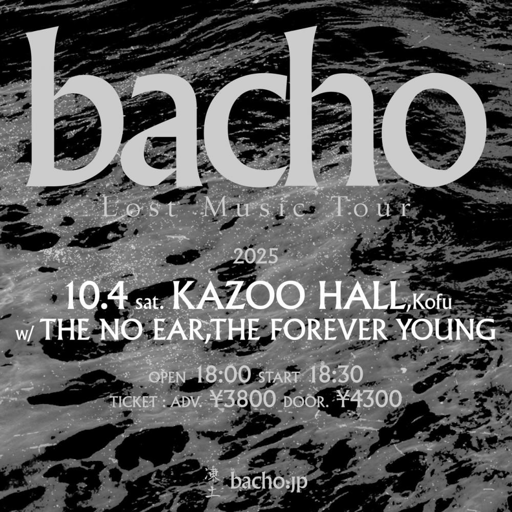 bacho "Lost Music Tour"OPEN 18:00 / START 18:30 adv ¥3800(D別) / day ¥4300(D別) [出演] [チケット取扱い] |