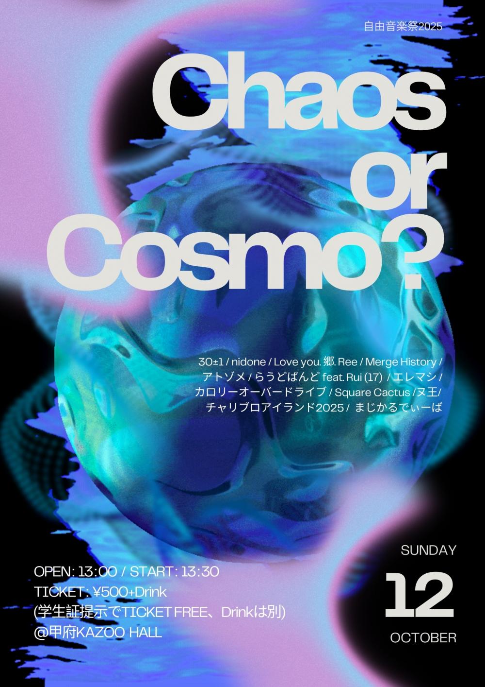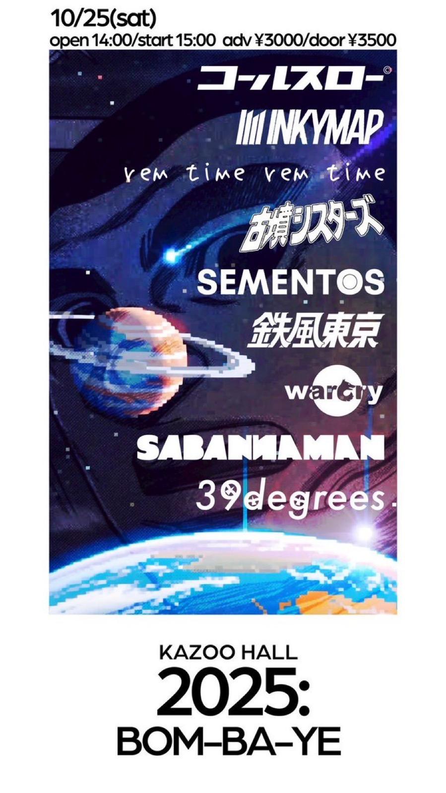 KAZOO HALL 24th Anniversary山梨大学フリーミュージック部OB•OG presents 「自由音楽祭2025 - Chaos or Cosmo? -」OPEN 13:00 / START 13:30 adv ¥500(D別)※学生証提示で入場料無料(D別) / day ¥500(D別)※学生証提示で入場料無料(D別) [出演] [チケット取扱い] |