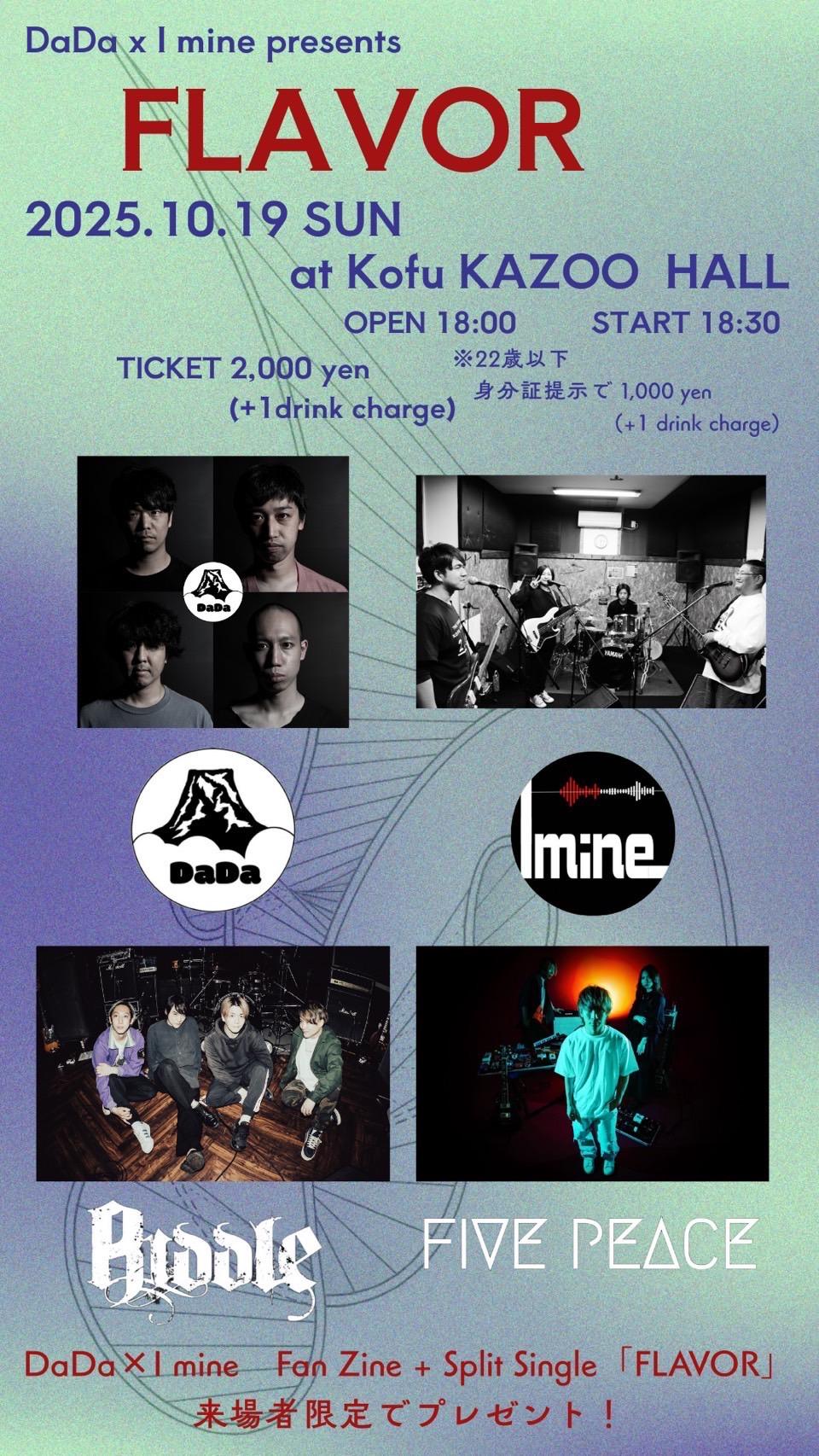 DaDa x I mine presentsFLAVOROPEN 18:00 / START 18:30 adv ¥2000(D別)※22歳以下は身分証提示で¥1000(+D) / day ¥2000(D別)※22歳以下は身分証提示で¥1000(+D) [出演] [チケット取扱い] |