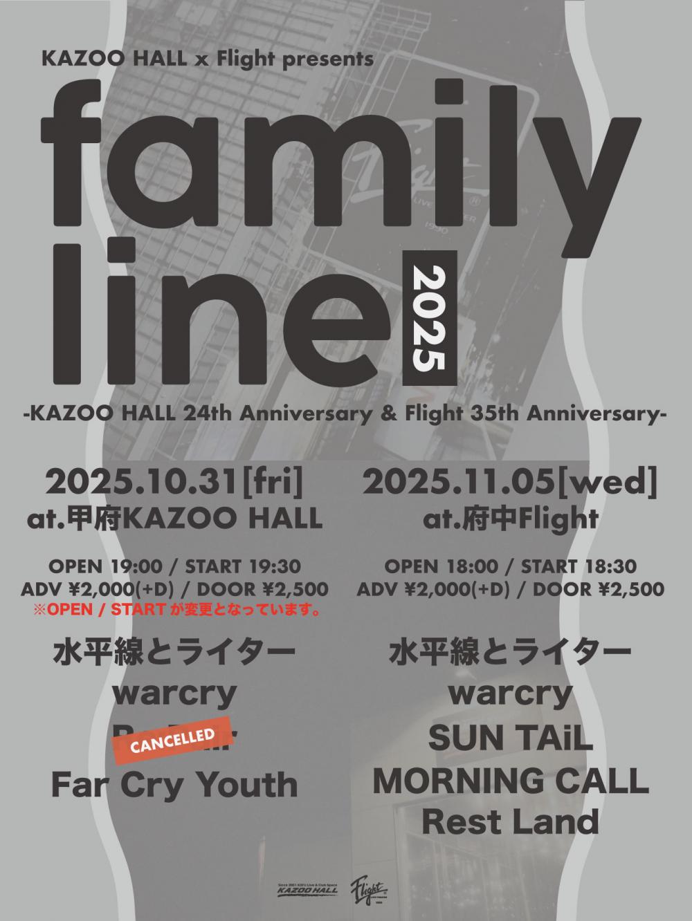 KAZOO HALL x Flight presentsfamily line 2025 -KAZOO HALL 24th Anniversary & Flight 35th Anniversary-OPEN 19:00 / START 19:30 adv ¥2000(D別) / day ¥2500(D別) [出演] [チケット取扱い] |