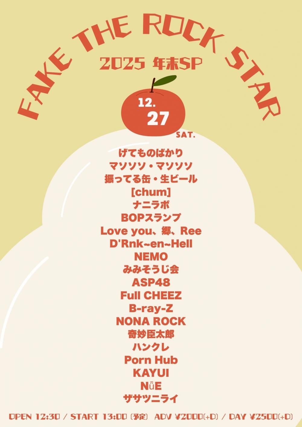 KAZOO HALL presentsFAKE THE ROCK STAR -2025年末SP-OPEN TBA / START TBA adv ¥2000(D別) / day ¥2500(D別) [出演] [チケット取扱い] |