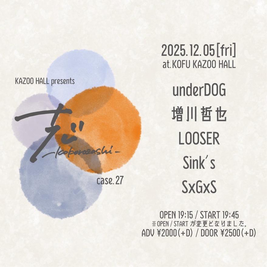 KAZOO HALL presents志-kokorozashi- case.27OPEN 19:15 / START 19:45 adv ¥2000(D別) / day ¥2500(D別) [出演] [チケット取扱い] |
