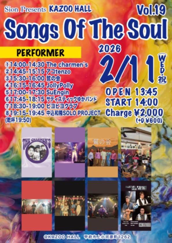 KAZOO HALL presentsSongs Of The Soul Vol.19OPEN 13:45 / START 14:00 adv ¥2600(D込) / day ¥2600(D込) [出演] [チケット取扱い] |