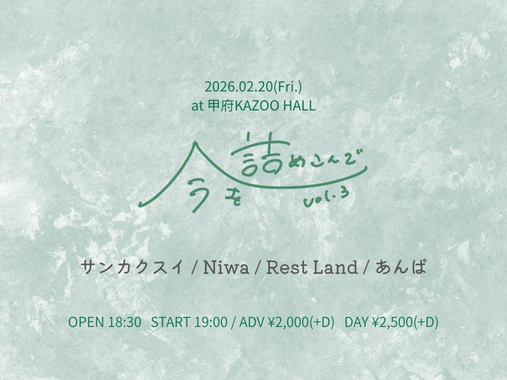KAZOO HALL presents今を詰めこんでvol.3OPEN 18:30 / START 19:00 adv ¥2000(+1D) / day ¥2500(+1D) |