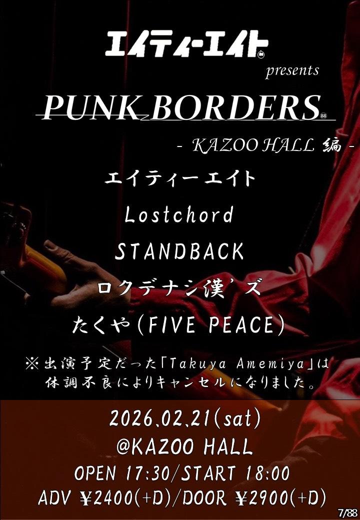 エイティーエイト presentsPUNK BORDERS【KAZOO HALL 編】OPEN 17:30 / START 18:00 adv ¥2400(D別) / day ¥2900(D別) [出演] [チケット取扱い] |