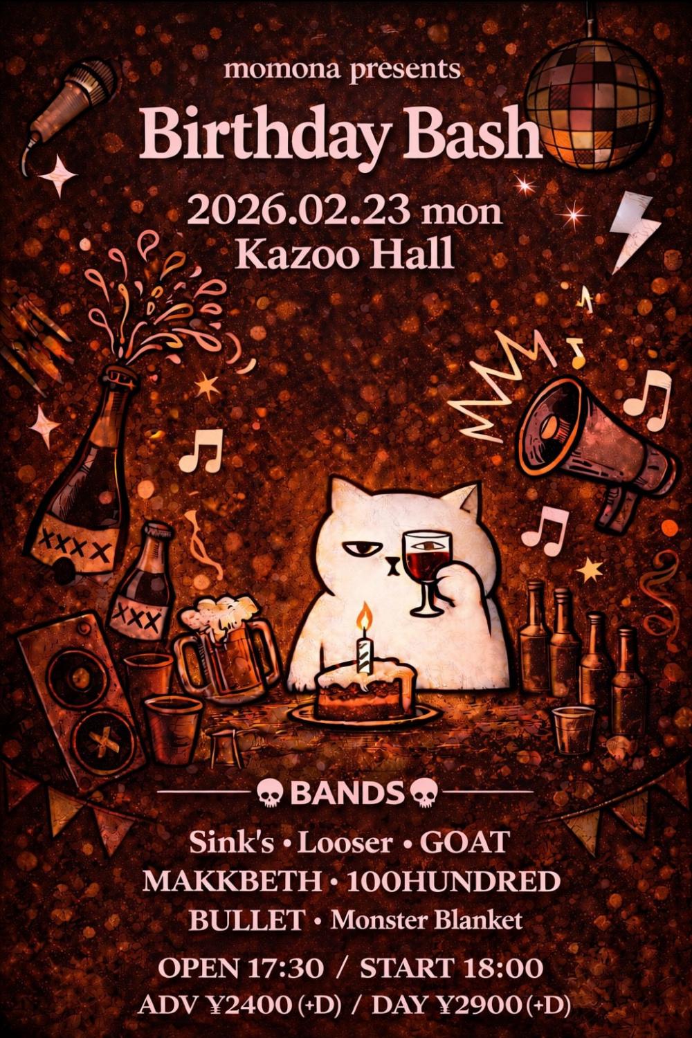 momona presentsBirthday BashOPEN 17:30 / START 18:00 adv ¥2400(D別) / day ¥2900(D別) [出演] [チケット取扱い] |