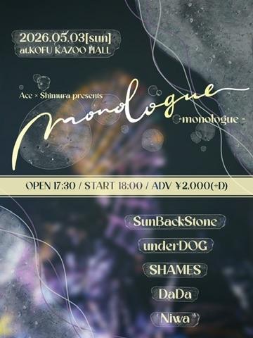 Ace × シムラ presentsmonologueOPEN 17:30 / START 18:00 adv ¥2000(D別) / day ¥2500(D別) |