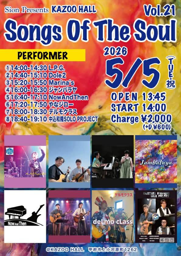 KAZOO HALL presentsSongs Of The Soul vol.21OPEN 13:45 / START 14:00 adv ¥2000(D別) / day ¥2000(D別) [出演] [チケット取扱い] |