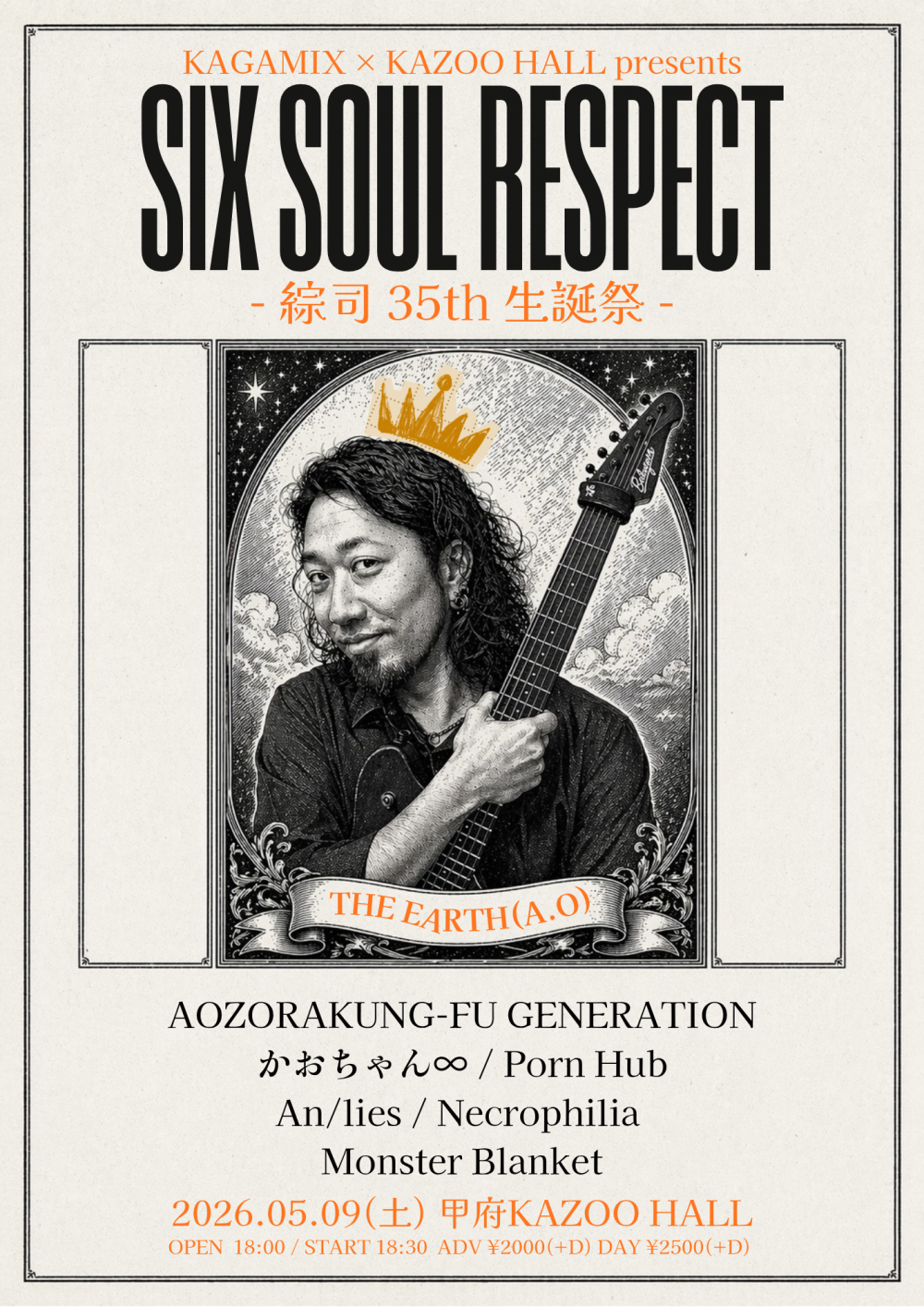KAGAMIX × KAZOO HALLSix Soul Respect ~綜司生誕祭~OPEN 18:00 / START 18:30 adv ¥2000(D別) / day ¥2500(D別) [出演] [チケット取扱い] |